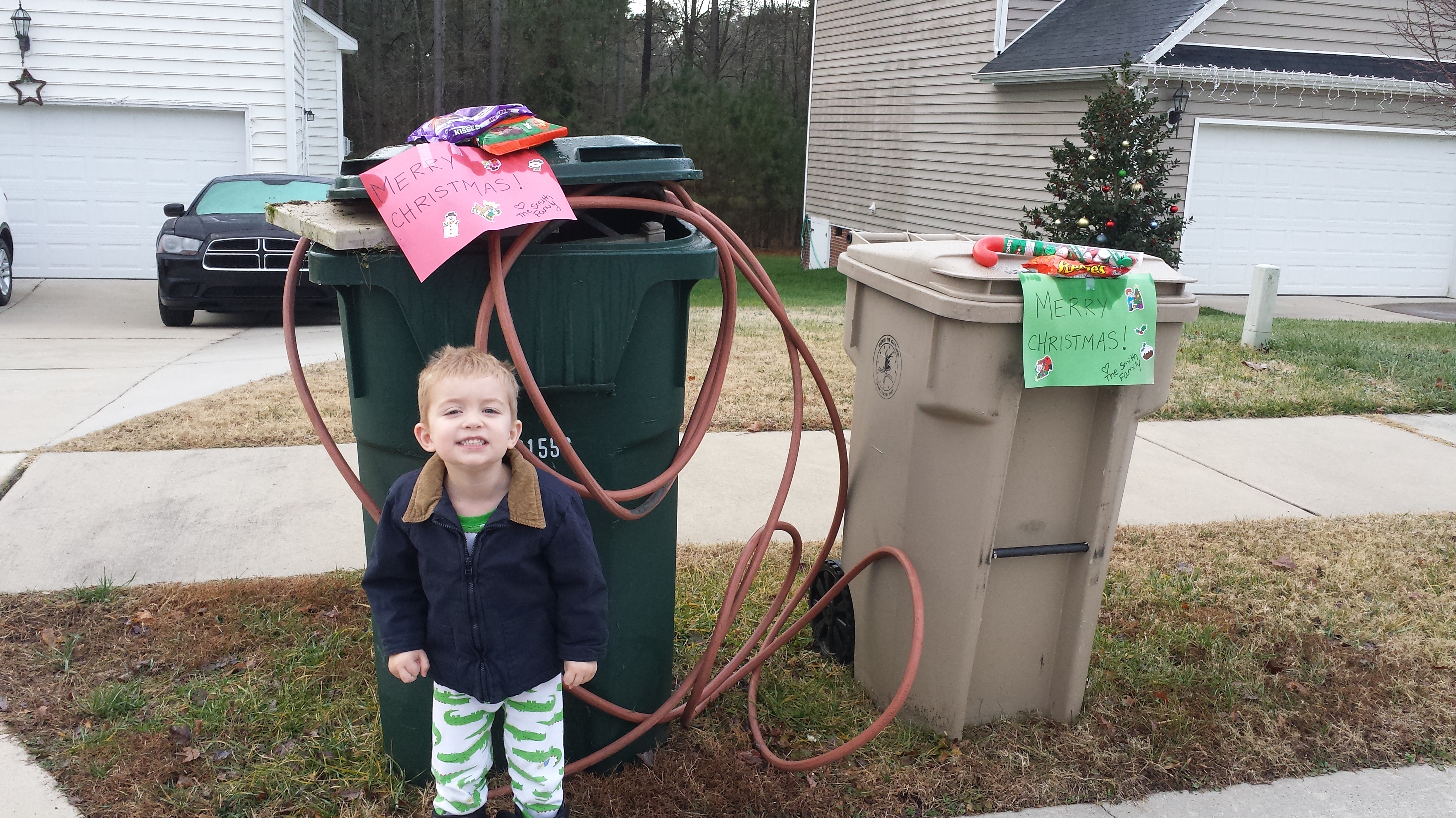Christmas presents for the trash collectors (Brady’s most favorite activity!!)