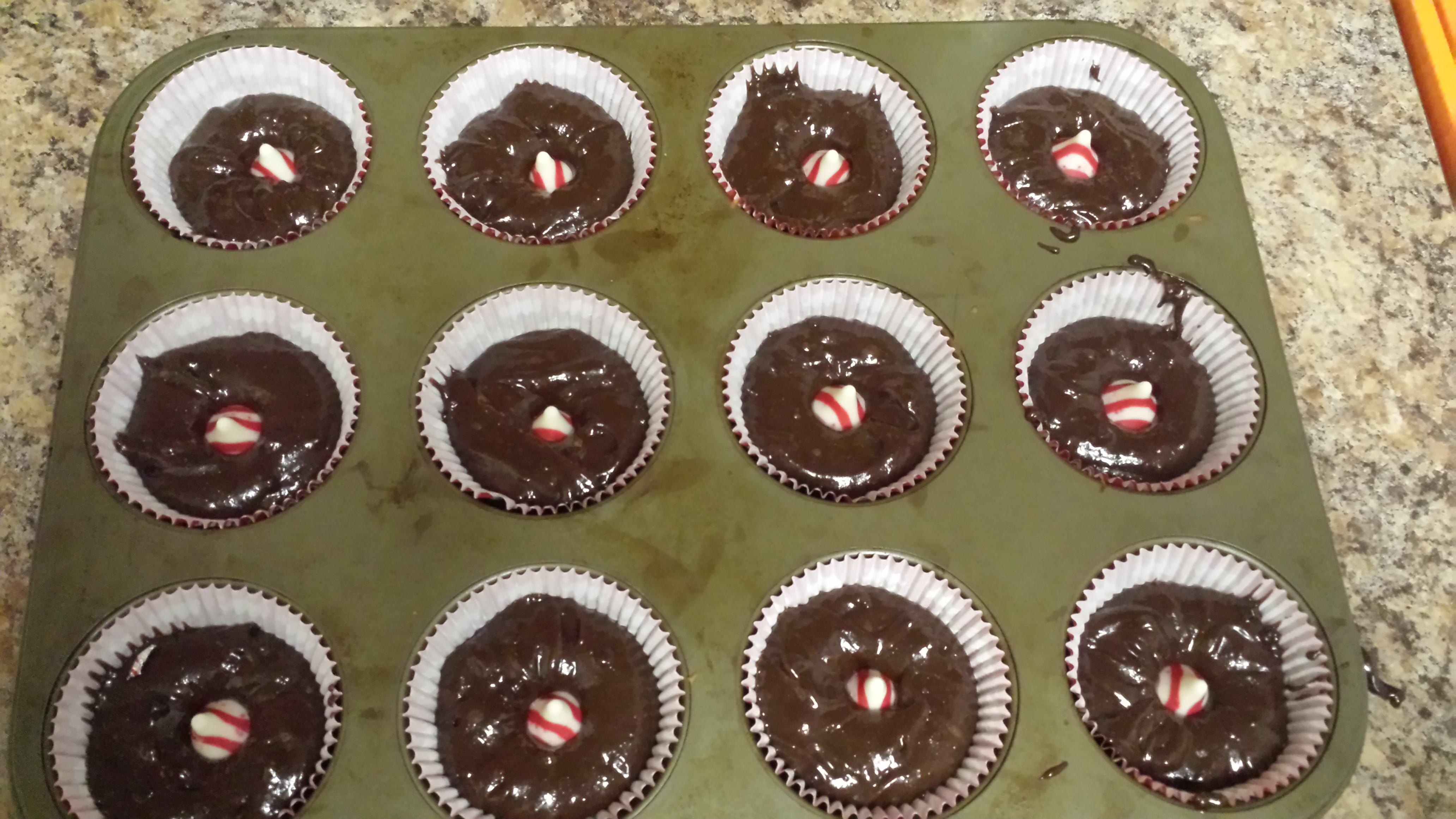Making Candy Cane Brownies for our neighbors.